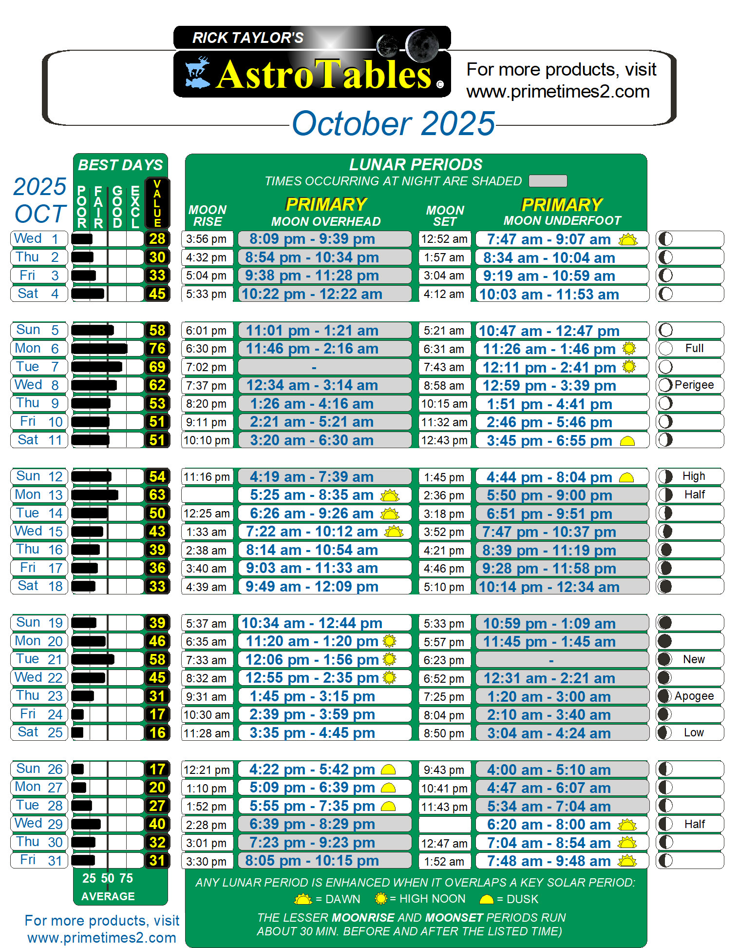 PrimeTimes Wall Calendar or Ultimate PrimeTimes App.