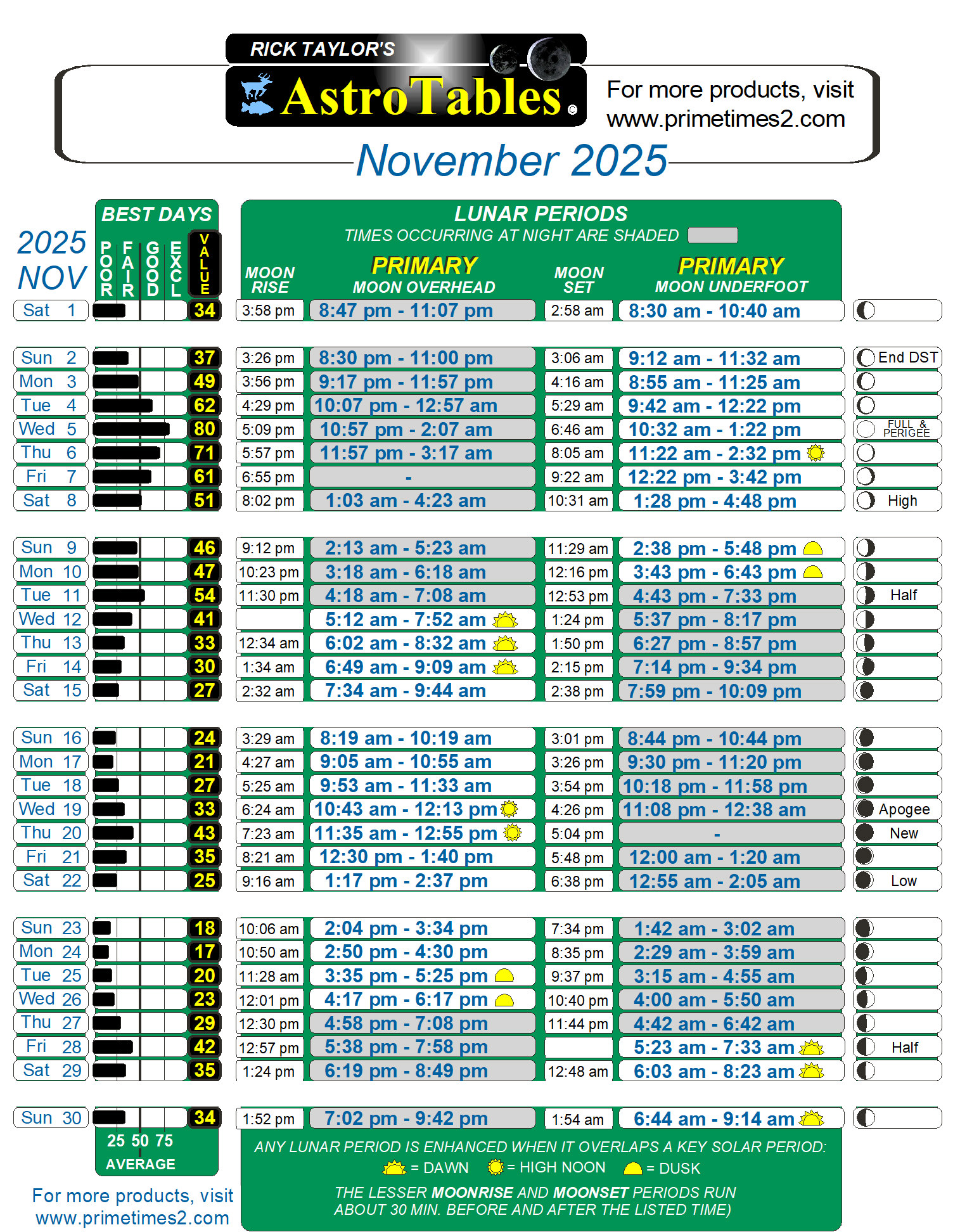 how the moon can affect the activity periods of fish and game. Use it for a while.